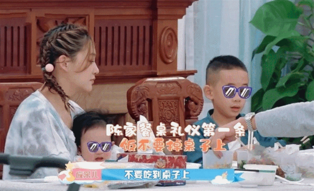 就是这么手忙脚乱的情况下,她还要用余光去瞅瞅Jasper有没有好好吃饭。Jasper吃饭的时候往桌子上掉了一粒米,她就一个白眼;接着又掉了几粒,她马上一句怒斥;吃完饭随手把筷子放桌上,应采儿立刻怒目而视。可别说,她家餐桌上的规矩可不少,屏幕上就打出了四条: