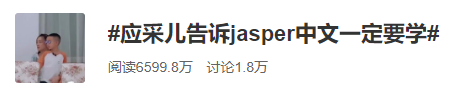 最近,应采儿和儿子Jasper上了热搜,起因竟是因为”学中文“。👇