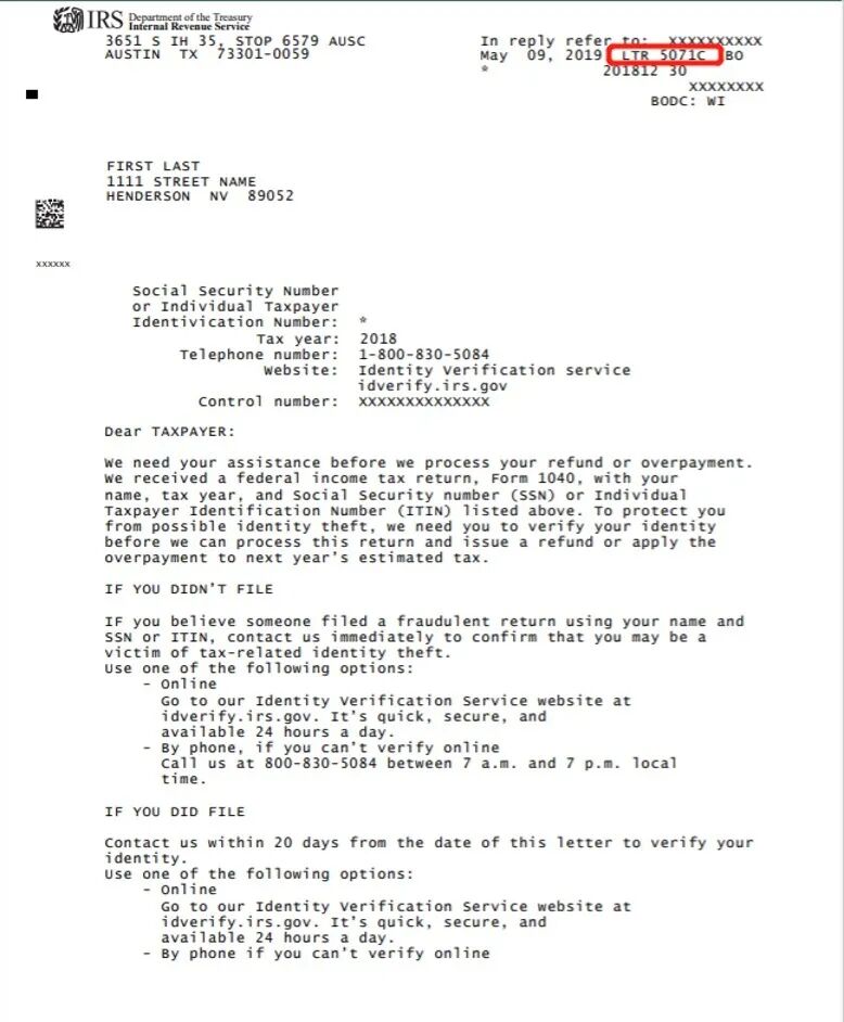 5071C是国税局发出的一封信