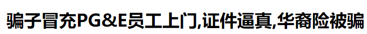 “有两名谎称自己是PG&E工作人员的西裔男子上门诈骗,他们用的骗术太高明了,要不是我一直很小心,很可能被他们骗走了支付密码或者相关授权!”陈女士说道。