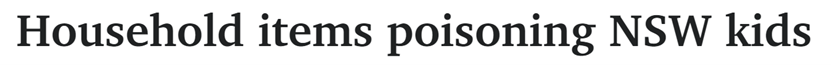 名单中还包括漂白剂(472例在新州)、家用清洁剂(446例)、含有可待因的扑热息痛药物(336例)和cyaulume荧光棒(更常被称为荧光剂(414例)。
