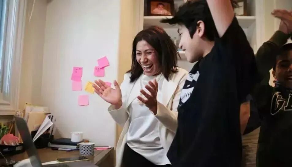 一个移民家庭,墨西哥裔母亲Emiliana Guerec和两名子女欢庆拜登就任总统  图:Getty Images