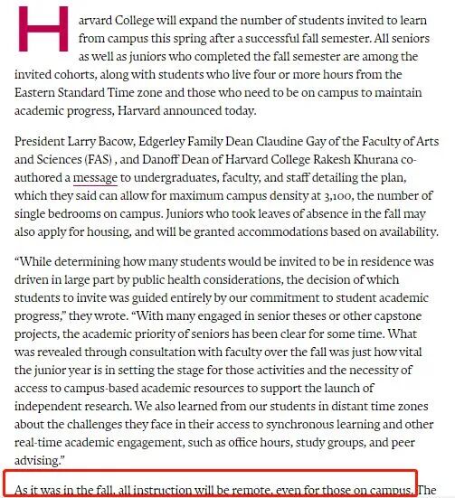 哈佛大学,作为美国私立大学的标杆之一,其文理学院院长Claudine Gay, 在去年12月初,就已经透露过“希望”能在2021年秋季部分甚至全面恢复正常教学运行的想法。