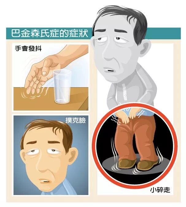 5、震颤性麻痹:帕金森病症最主要的症状就是手不停的抖动,非常有节律性,手指震颤呈“搓丸样”,还会伴有运动减少、面部缺乏表情等。患者在走路时还会出现“慌张”的步态。这种情况可以与其它震颤情况明显区分开来。