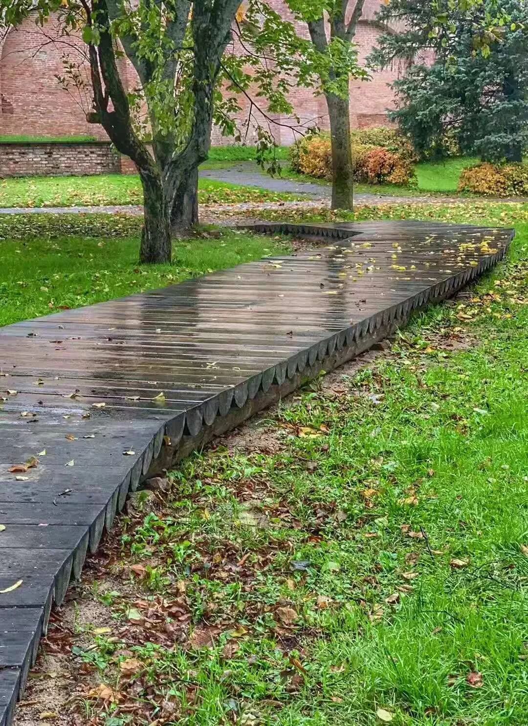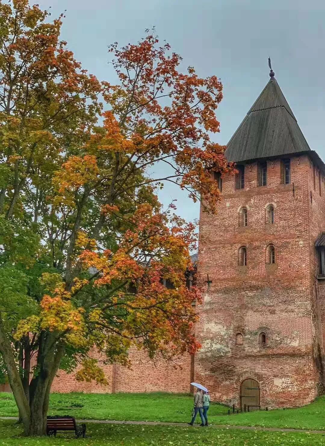 程建春:喜欢1、4、7;1.绿毯般的草地、砖红的墙与灰顶的教堂、灰黯的天空对比;4.秋雨过后寂寞蜿蜒的木栈道;7.东正教教堂抢眼金顶、厚重灰葱头与大片绿树下多彩的沐雨游人......;