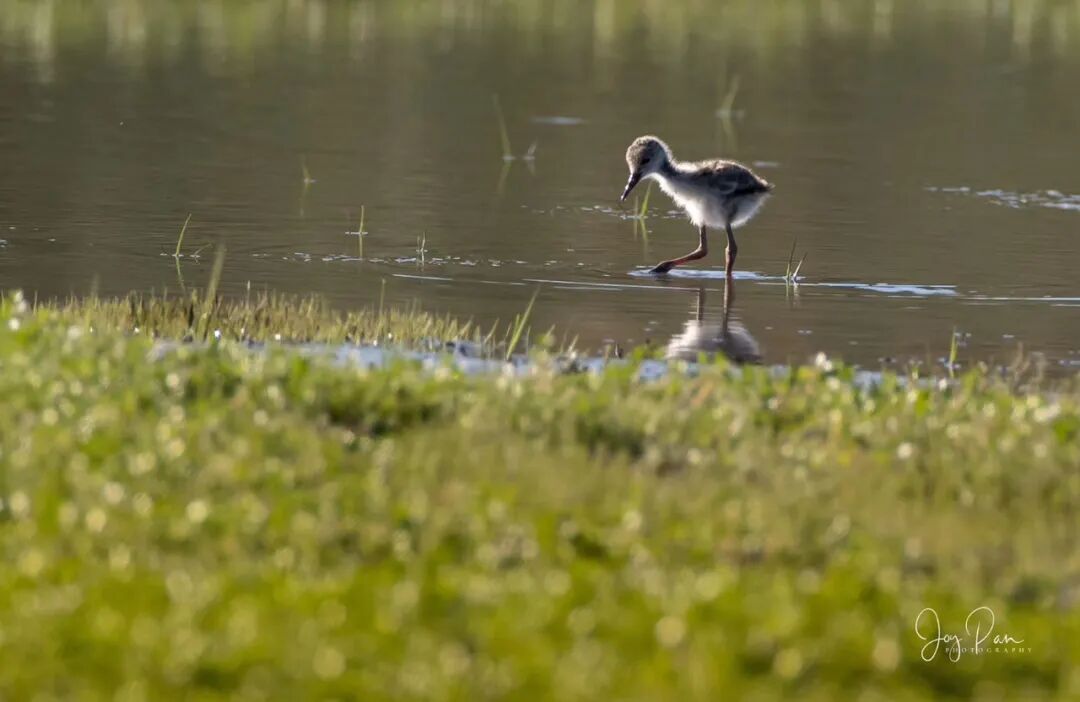 “涉江采芙蓉,兰泽多芳草”。今天我竟然有幸见证生命历程,拍到了初涉湖水的小长嘴鹬宝宝“鸟生”第一步。