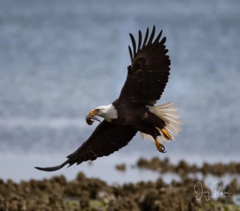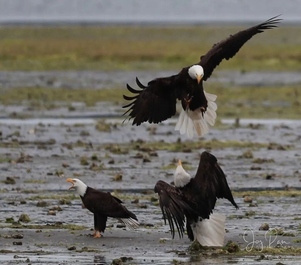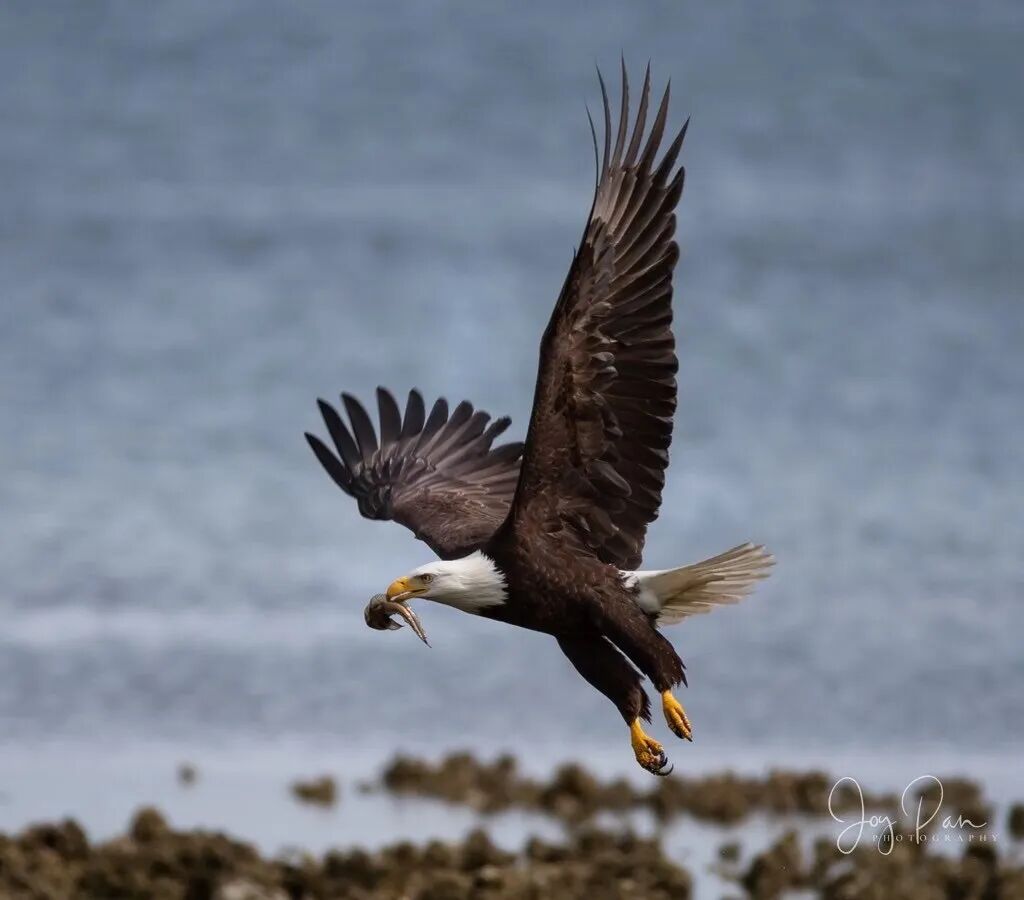 鱼儿太小,带给树窝里的鹰宝宝吃吧