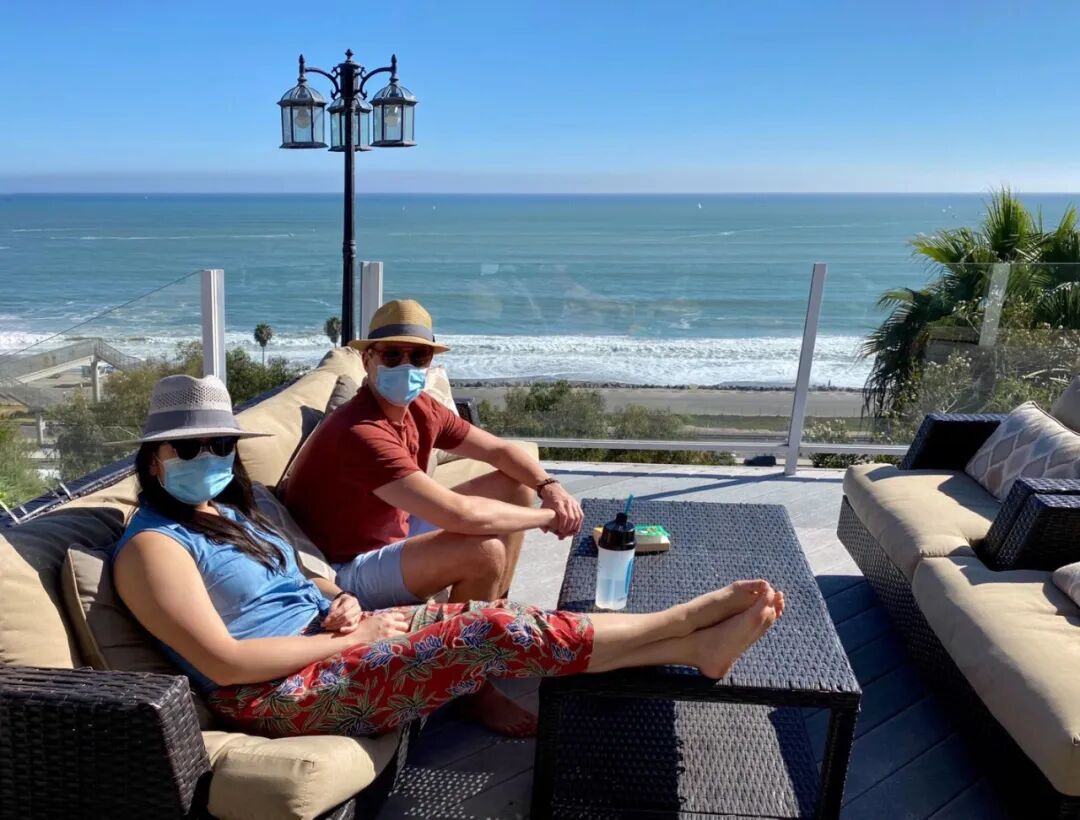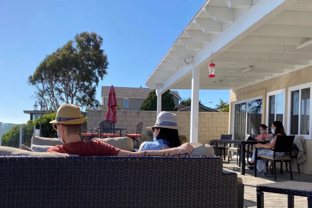 阳台聚会,戴口罩,略有面具派对的赶脚!自家阳台嗨起来!
