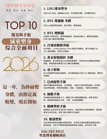 如果「減重塑形、身體線條重建」是您今年的新年目標之一,位於洛杉磯 San Gabriel 聖蓋博的樂沙醫美容中心,提供從非手術減脂、醫學體雕到整形外科手術的完整解決方案,協助您以安全、有效且可持續的方式,達成理想體態。