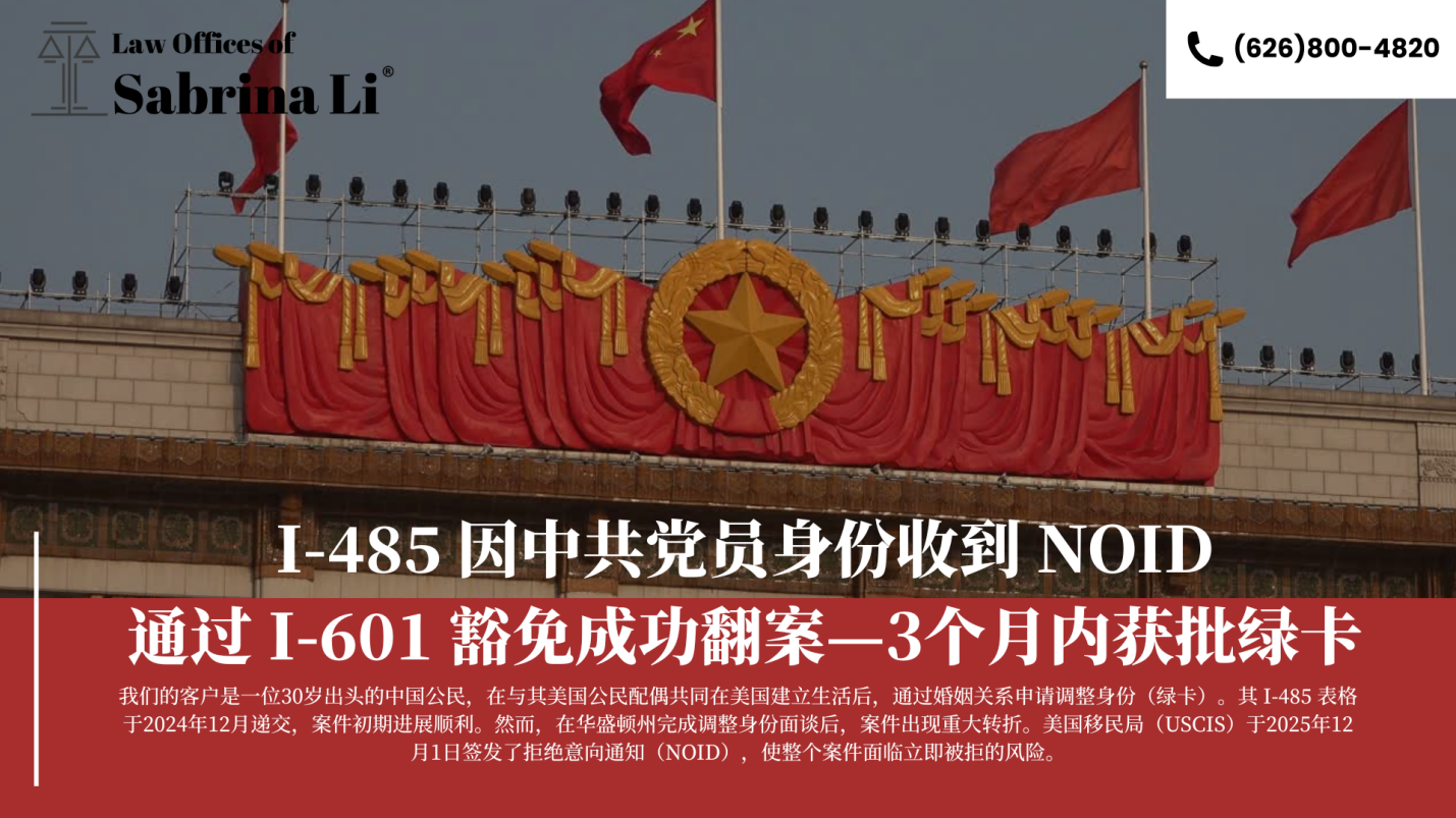 移民-I-485-因中共党员身份收到-NOID-通过-I-601-豁免成功翻案-3个月内获批绿卡