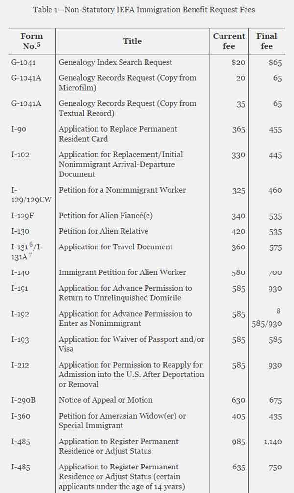 根據聯邦公報,新的移民規費收費標準與今年5月4日公佈徵求外界意見的初版幾乎相同,其中移民入籍費用將從現行的595美元,調高到640美元。不過,移民局也將為收入高於聯邦貧窮線150%,但低於200%的家庭,首度提供高達半價的入籍優惠,入籍費只收320美元。