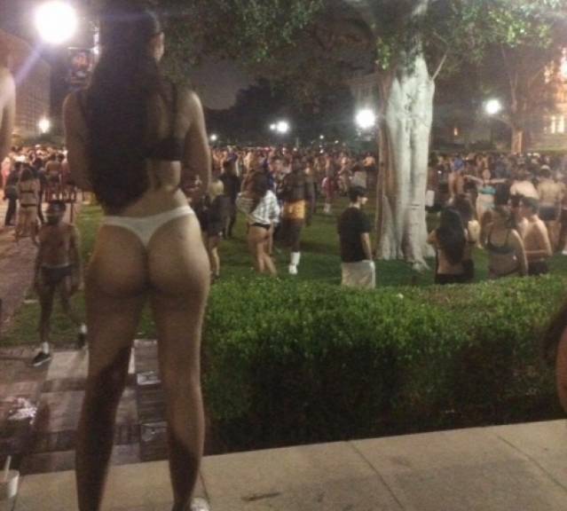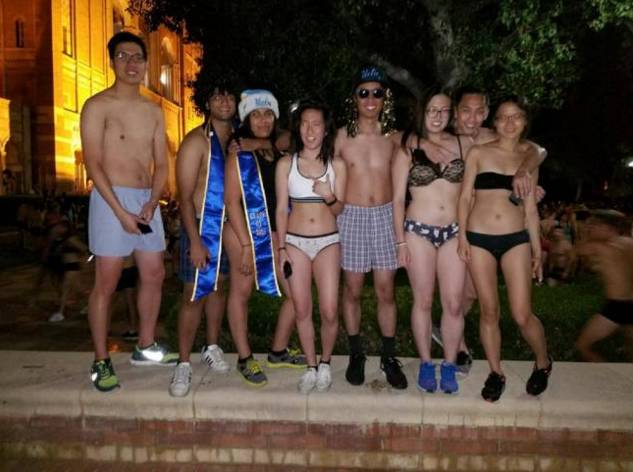 据报道,洛杉矶加大学生行之有年的传统,即在期末考那周的周三午夜,不管男女只穿内衣从学校宿舍跑到图书馆前集会,作为纾压,今年也照常举行。然而由于随学生跑的围观群众行为逐渐脱序,以致9日凌晨1时,大批洛杉矶加大校警在现场戒备,洛杉矶县警局也派员到现场协助维持秩序及驱散人群。