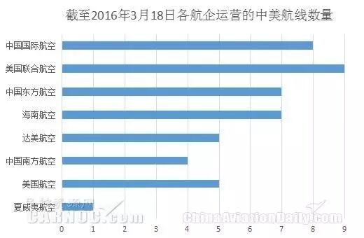 美国航空--在与全美航空达成合并计划后,美航已是目前全球运力最大的航空公司,其在美国共有9个枢纽机场。目前美航在中国经营着北京、上海、香港至美国达拉斯、洛杉矶和芝加哥的6条航线,每天有6个航班往返中美两地。美国航空首席运营官艾罗德曾透露,计划在上海、北京枢纽成熟的情况下,开辟二三线城市的航线。