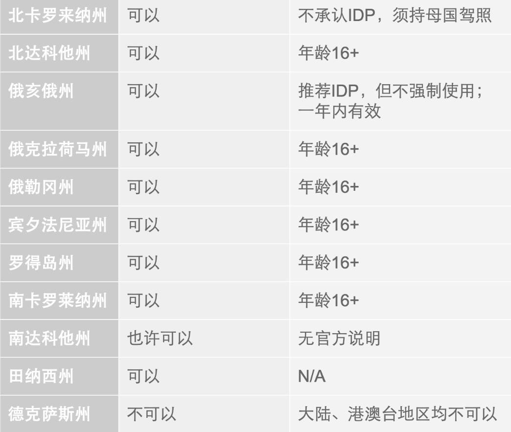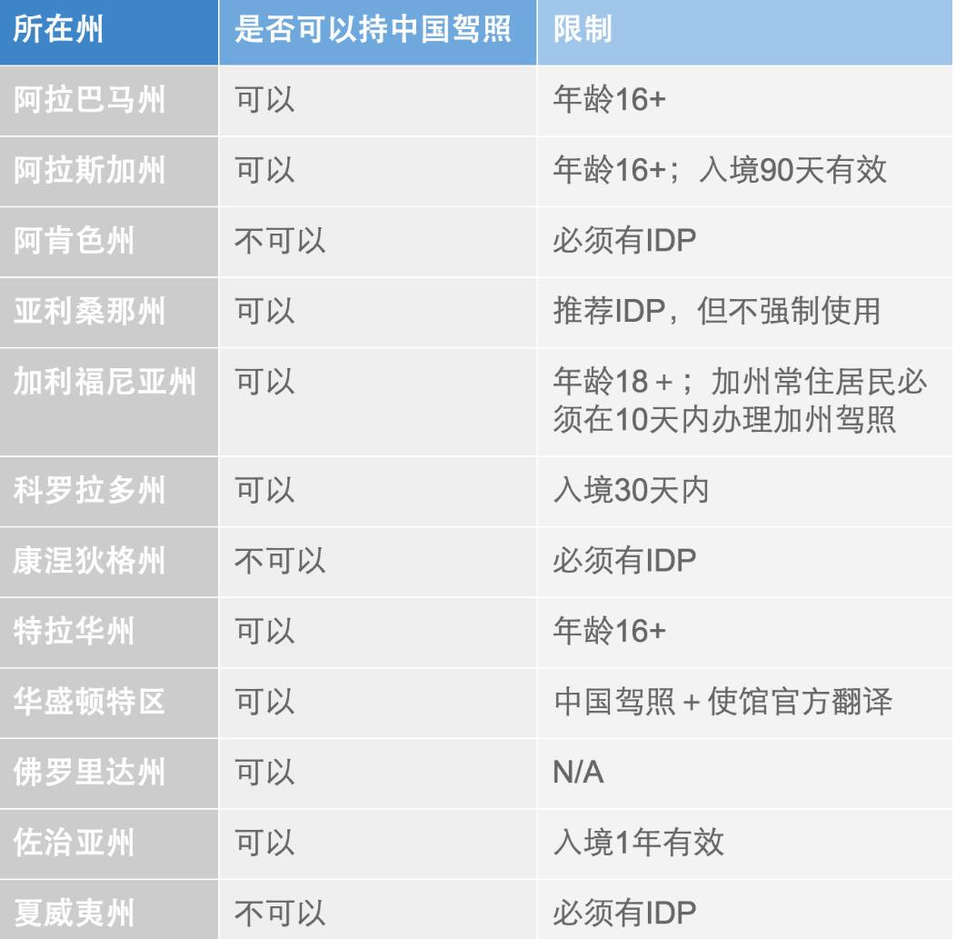 以上是对于美国热门旅行目的地的驾照信息及官网截图。所有州的全部情况已经有热心网友搜罗整理,也在这里引用给大家作为参考。