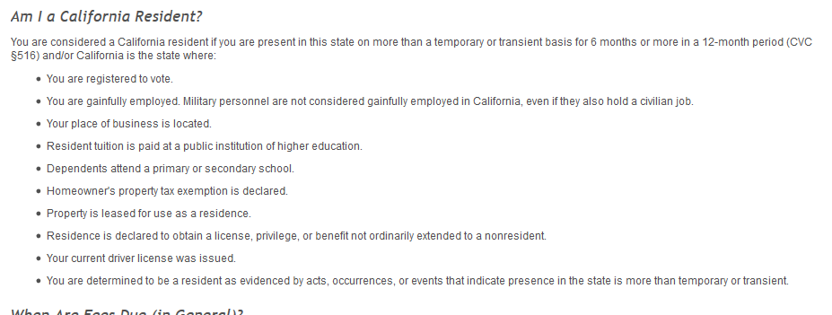 算!DMV官网规定,居住满6个月及以上的,在DMV眼里都算作加州居民,和居民一样对待。