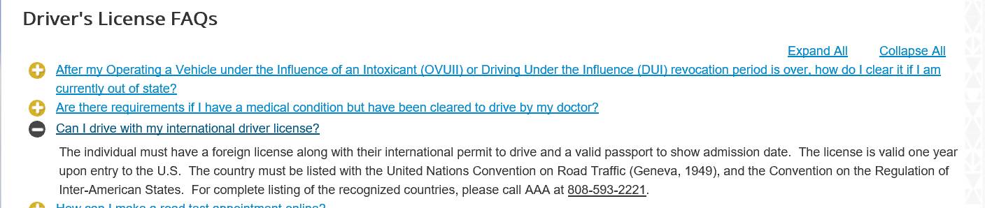 小编再次强烈建议在出行前,根据自己的路线计划,利用Google,使用州名+DMV搜索,进入GOV结尾的网站。nonresident driving license,visitor,outof country这样的关键词进行搜索,确认最新的信息。