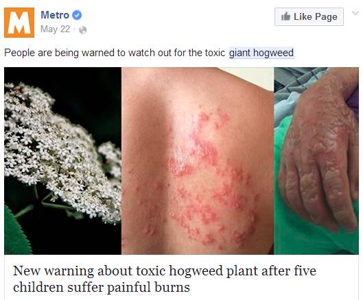 Giant hogweed,这个名字听起来像不像哈里.波特(Harry Potter)里的什么神奇植物?