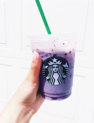 继粉色杯得到了各路粉丝的追捧后,星巴克推出了紫色杯,为了做出薰衣草般的唯美小清新紫色,采用豆奶代替了椰奶,所以这款热量并不高,要保持身材的妹纸可以大胆order…
