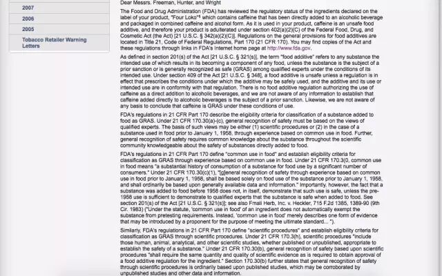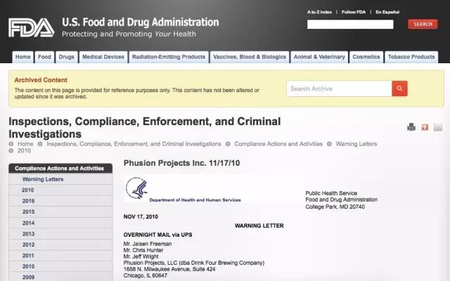 FDA警告FOUR LOKO制造商Phusion Projects的信函