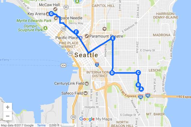 游行范围:西雅图纪念花园,卡尔安德森公园,西湖公园、亚马逊总部
