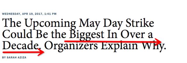 移民们正在呼吁当地民众五一当天停课、罢工强调工人在社会上的重要性。