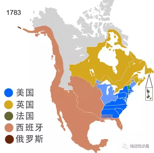 雖然獨立後的北美十三殖民地成功控制大密西西比並擴張至太平洋,但英國人並非北美洲唯一的殖民者,法國人和西班牙人都在北美有大片殖民地。