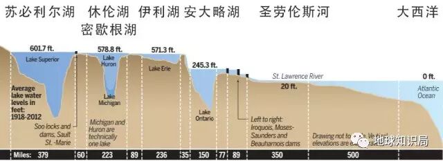 五大湖——聖勞倫斯河——大西洋剖面圖