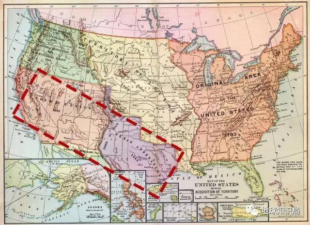 獨立後的墨西哥繼承了西班牙帝國在加利福尼亞、亞利桑那、新墨西哥、德克薩斯等地的廣闊殖民地。老實說,這些土地比墨西哥核心區(墨西哥谷)要有價值的多,但這些所謂的領土與核心區之間相隔連綿的山脈和沙漠,如果墨西哥不能在墨西哥灣占有優勢,必將失去沙漠以北的土地,而控制墨西哥灣意味著控制新奧爾良(密西西比出海口),而這是美國的核心利益。
