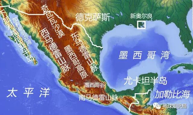 從落基山脈向南延伸的墨西哥和中美洲則遍布山地交通不便,南部更是爲熱帶雨林所覆蓋,墨西哥如果無法控制墨西哥灣沿岸的其他板塊(如德克薩斯、密西西比、佛羅裏達),使自身的核心變爲墨西哥灣,進而與內陸的密西西比流域對抗,則只能退守爲墨灣西岸的山地國家,飽受貧困與分裂之苦。