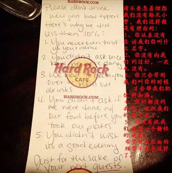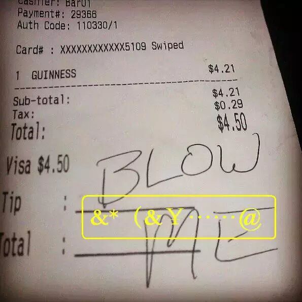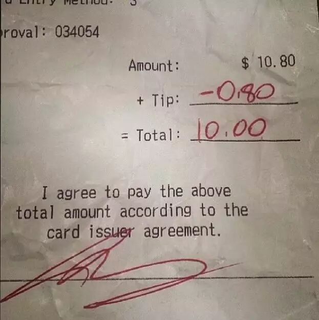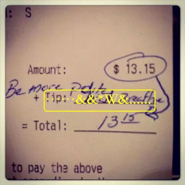 3. 給小費時,在紙幣上寫上侮辱性語言。