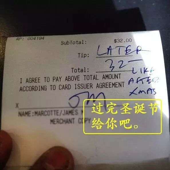 看上圖就知道了,美國人對于高質量的服務還是很尊重的。快餐店不用給小費(無論你是否留下就餐),像麥當勞、肯德基這樣的快餐店就不用付小費了,點完餐離開就好。