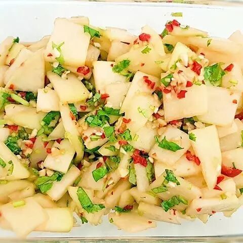 做法:苤蓝切丝无需过水,用盐渍后凉拌,是下粥的好菜