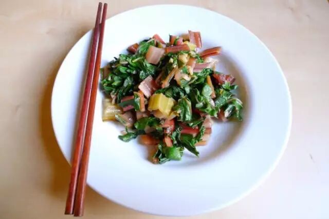 做法:这道菜其实跟大多数蔬菜做法一样,只是因为莙荙菜茎部相对比较难熟,可以把茎部先下锅炒,略软之后再加入叶子一起炒,最后加盐炒匀,口感比较像苋菜。
