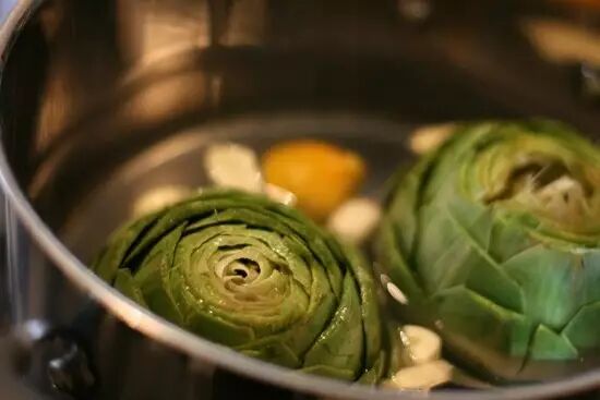 做法:朝鲜蓟并非所有部分都是食用,主要吃叶子部分,将朝鲜蓟去头去尾,将枯黄的部分去掉,放入蒸锅里蒸,大概20-30分钟,直至花瓣分裂就说明完全熟了。但是花瓣并不能直接吃,把花瓣扯下来,吸里面的汁水,外皮扔掉,吃法有点像甘蔗。