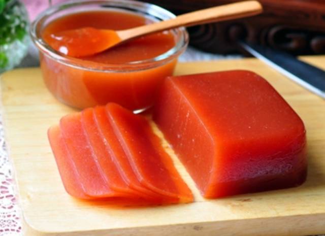 做法:将大黄切块后加少量水,小火熬制,根据自己口味加入冰糖,煮至完全融化后加入吉利丁或者其他定型剂冷藏即可。成型后加入枸杞再放上桂花蜜或者柚子蜜,清凉开胃。
