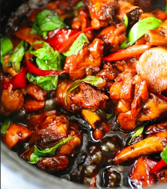 做法:罗勒还有个别名叫九层塔,这就是我们熟知的三杯鸡的主要调料,“三杯”是一杯酒一杯酱油一杯油,锅内放油,鸡块放入油中炸一下,让鸡块的表皮酥脆,然后倒入酒和酱油红烧,罗勒在酱汁的调和下味道不会太重,会让鸡肉不那么油腻多一份清新。