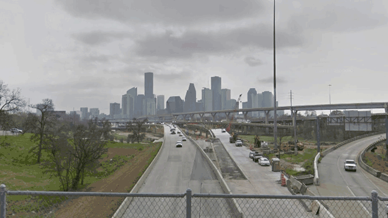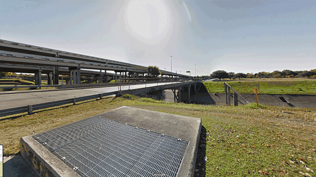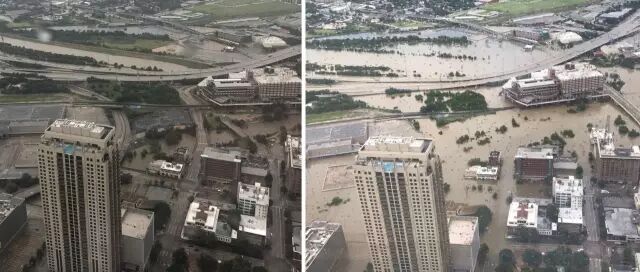 气象频道发布的休斯顿高速公路I-610洪水前后的对比图