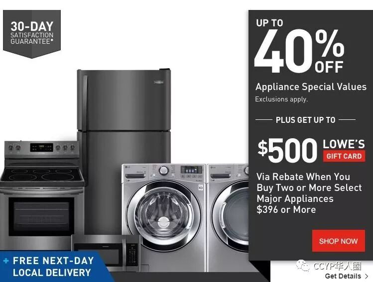 来Lowe’s享受冰箱/厨具/洗衣机最高5折的大型优惠吧!