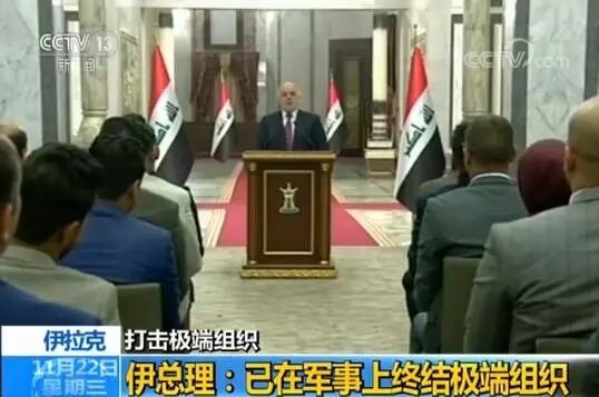 21日,伊拉克总理阿巴迪表示,伊拉克已在军事上终结了极端组织。阿巴迪称,伊拉克在过去3年的反恐战争中取得重大成果,在收复拉沃镇后,极端组织残余分子只能在西部沙漠地带躲避。阿巴迪表示,待政府军在西部沙漠地带的清剿行动结束,他将宣布极端组织的最终失败。