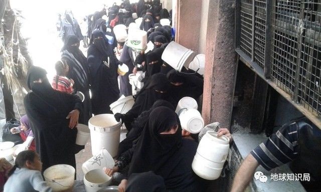 图为拉卡女性在排队领取饮用水