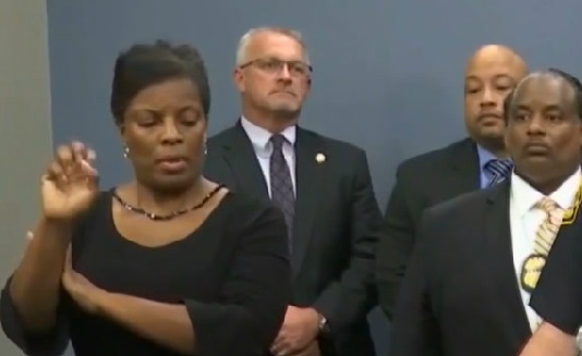 当地时间11月28号,美国佛罗里达州坦帕市警方召开记者会,当警察局长在公布连环杀人案嫌犯时,旁边手语翻译员完全做着不相干的动作。