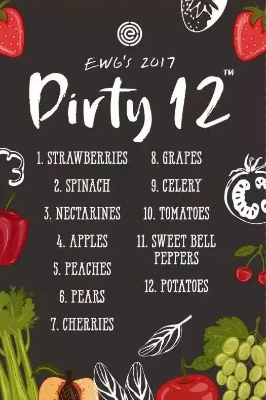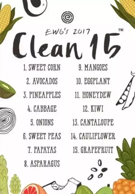 最近,美国环境保护组织Environmental Working Group(EWG)公布了“2017年果蔬农药残留含量排名名单”,分别列出了最脏蔬果和最干净蔬果的排名。