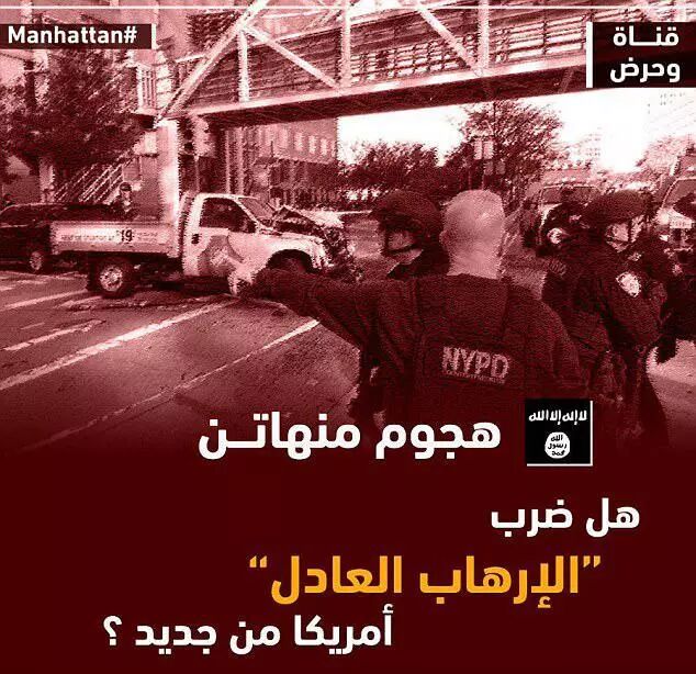 因为它正是今年11月刚刚发生的,曼哈顿卡车恐怖袭击的新闻画面。这一次ISIS将它作为海报再次发出警告,这又意味着什么呢?
