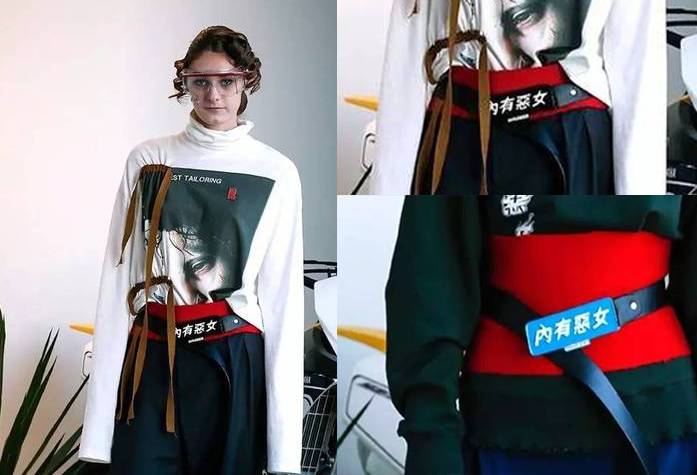 最尴尬的还是这个恶女套装~ 本来很美,但腰带印有内有恶女... 设计师你真的懂中文吗?