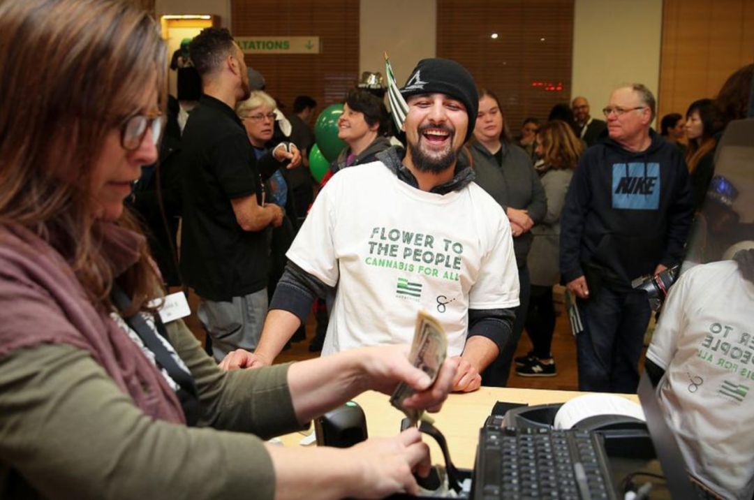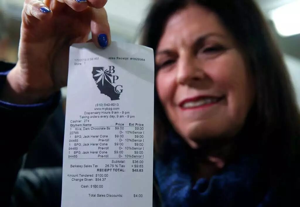 彻夜长队没有白熬,Conrad夫妇荣幸的成了店里成交的第一位客户,他们花了45.63美元买下了3卷 Joints大麻,这意味着加州对大麻长达一个世纪(104年)的禁锢,在这一刻,终于彻底解禁!