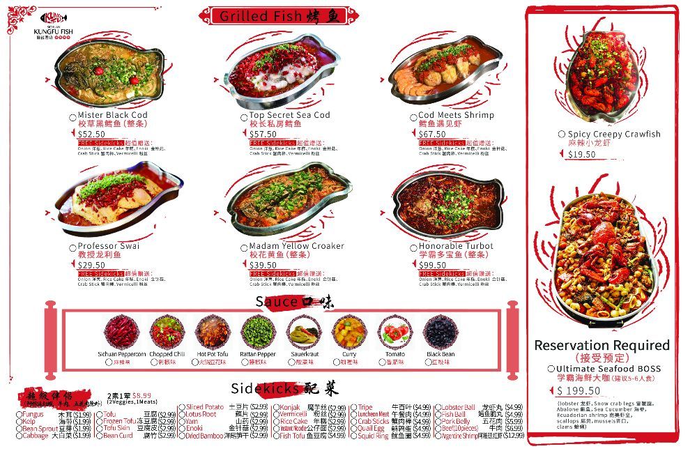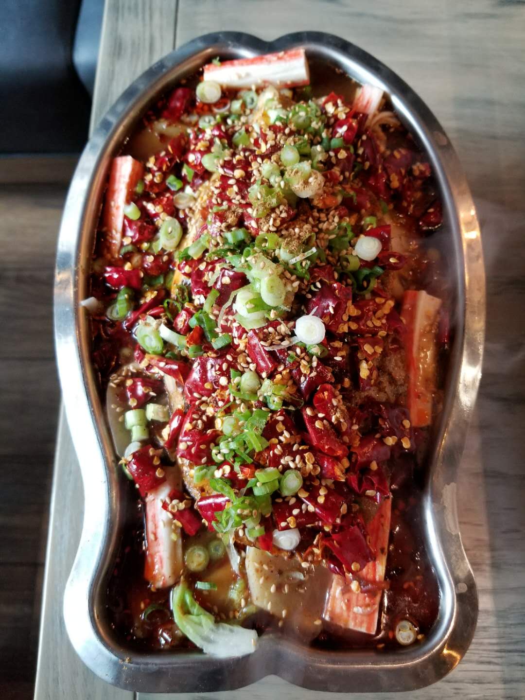 校草黑鳕鱼(整条)、教授龙利鱼一份。八种口味任选,辣不辣由你(麻辣味、剁椒味、火锅豆花味、藤椒味、酸菜味、咖喱味、番茄味、豆豉味)