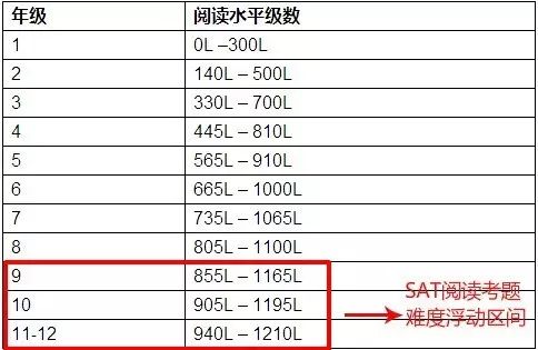 列一张Lexile根据年级的阅读分级表,大家可以先有点儿直观的认识: