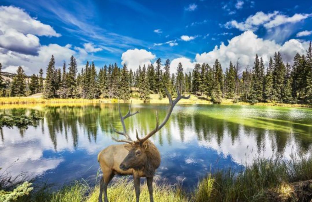 这里,人与自然是如此和谐地相处着,还有那些呆萌可爱的野生动物们:红鹿、黑熊、驼鹿、大角野绵羊、海狸等等,也成了这里最美的风景。