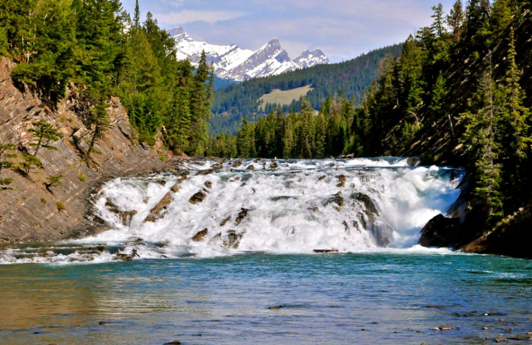 弓河瀑布Bow Falls位于班夫温泉酒店下方,河水从此处倾泻而下,冲刷着受到侵蚀的石灰石岩层,形成咆哮而下的瀑布。女神玛丽莲·梦露主演的电影《大江东去River of No Return》就是在弓河瀑布取景。