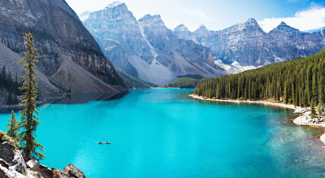 泛着小舟荡漾在碧蓝色湖泊中,满目皆是连绵不绝的落基山脉,犹如置身于童话世界,令人流连忘返。